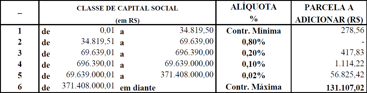 TABELAS PARA CÁLCULO DA CONTRIBUIÇÃO SINDICAL VIGENTES A PARTIR DE  01 DE JANEIRO DE 2020