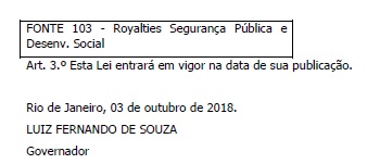 Segue abaixo a Lei Estadual nº 8.122 de 03.10.2018 na íntegra.